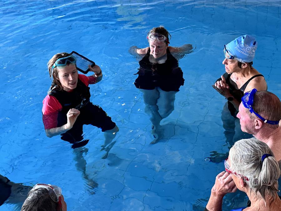 Een fijne persoonlijke cursus in een klein groepje. Waar je tijdens het leren van een (nieuwe) zwemslag, ook je hersens flink laat kraken.